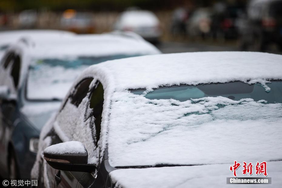 2018年10月28日,吉林长春,秋叶还未落尽,河水还未结冰,青青的小草还未来得及彻底枯萎,整个城市还沉浸于秋天的景色里,还需要一个星期才入冬,2018年入冬前的第一场雪突然降临,扬扬洒洒地飘舞了几个小时,奏响冬天来临前的序曲。 图片来源:视觉中国