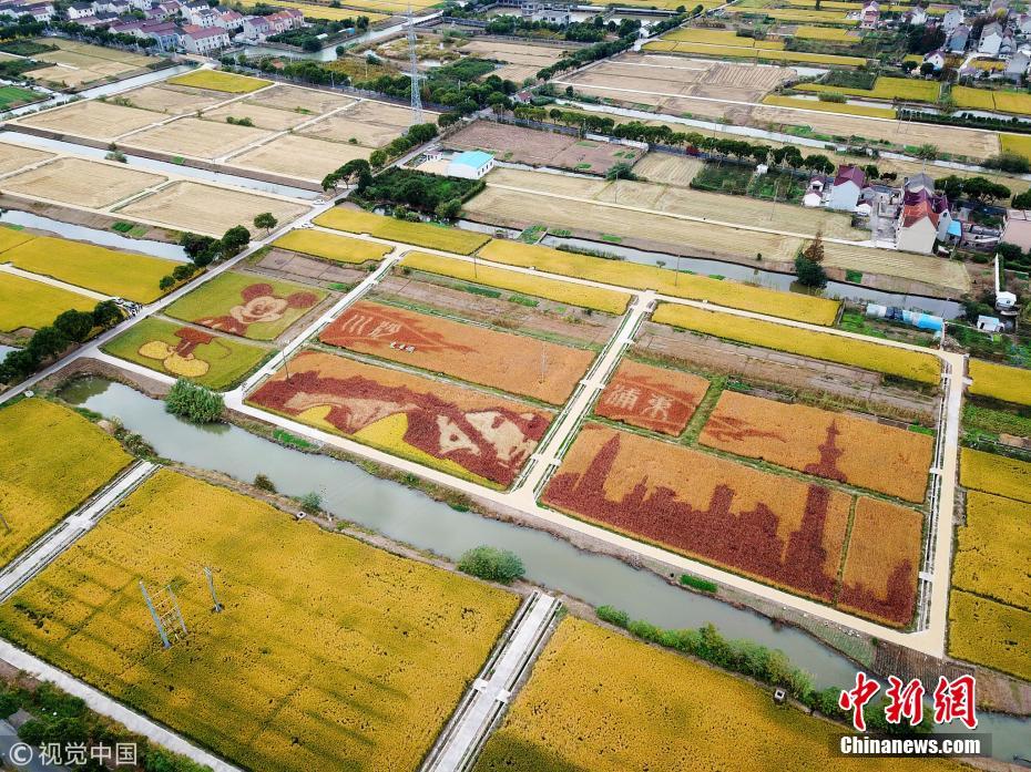 上海现巨型五彩水稻画 米老鼠、陆家嘴等元素一应俱全