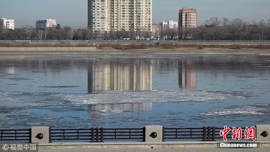 11月5日,中俄界江黑龙江黑河段出现大面积流冰,冰排、冰絮顺流而下,与中欧式建筑交相辉映颇为壮观。邱齐龙 摄 图片来源:视觉中国