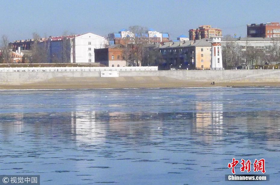 11月5日,中俄界江黑龙江黑河段出现大面积流冰,冰排、冰絮顺流而下,与中欧式建筑交相辉映颇为壮观。邱齐龙 摄 图片来源:视觉中国
