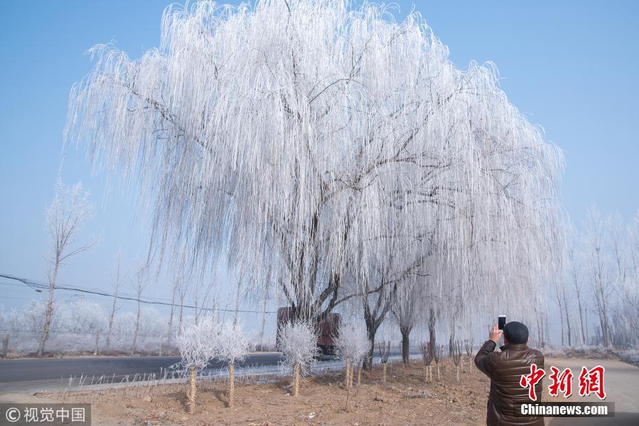 河北定州现雾凇景观 吸引路人驻足拍照留念