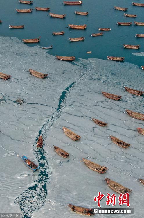 大连遭寒流突袭 渔民破冰营生
