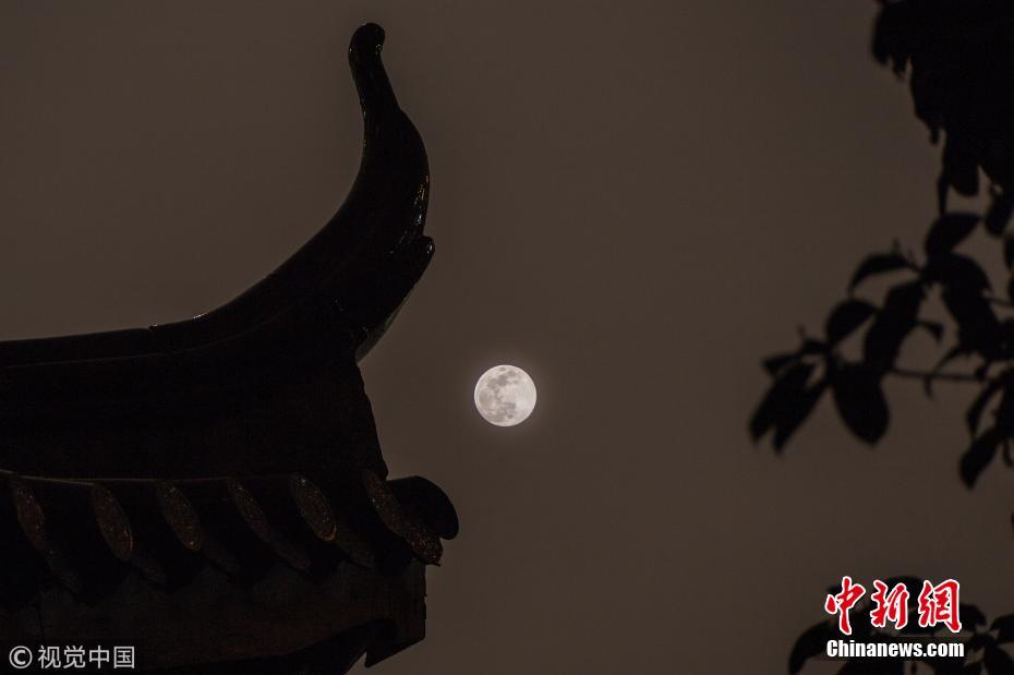 不巧的是,因一股强冷空气来“凑热闹”,中国大面积“告别”晴天,也将无缘今年最后一轮“超级圆月”。据天文预报,继今年1月21日和2月19日之后,今年的第三次也是最后一次“超级月亮”将于3月21日(农历二月十五)现身天宇。紫金山天文台专家介绍,“超级月亮”是指处于近地点位置附近的满月,其视直径比它处于远地点时大约增大14%,明亮程度大约增加30%。尽管肉眼看上去差别并不大,但这个“新兴”词汇在近年来格外吸引眼球。图为2019年3月20日,南京市江北新区大厂街道,2019年最后的超级大月亮。 图片来源:视觉中国