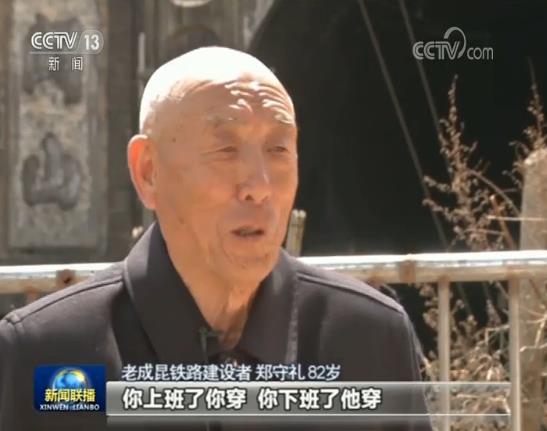 老成昆铁路建设者 郑守礼 82岁:那时候的条件苦啥都没有,下雨天披个蓑衣,我把雨鞋脱掉给你穿,你上班了就穿,你下班了他穿,啥都艰苦。