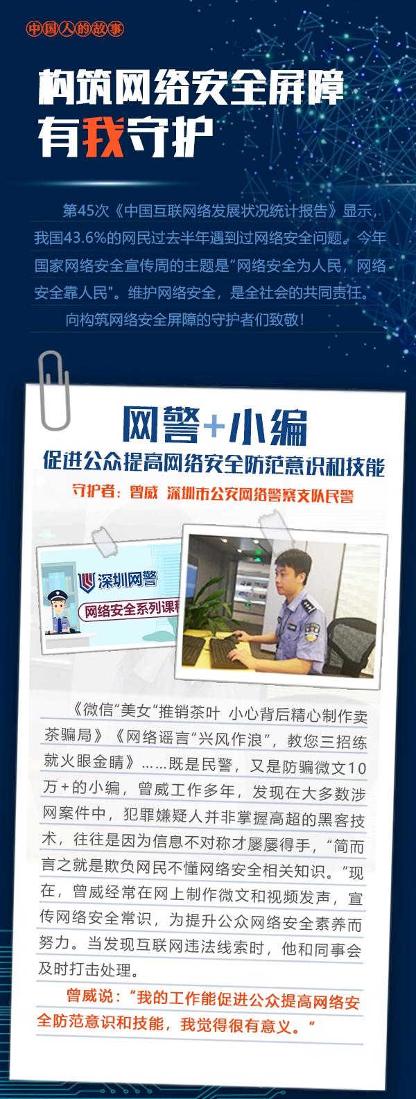 第45次《中国互联网络发展状况统计报告》显示,我国43.6%的网民过去半年遇到过网络安全问题。今年国家网络安全宣传周的主题是“网络安全为人民,网络安全靠人民”。维护网络安全,是全社会的共同责任。向构筑网络安全屏障的守护者们致敬!