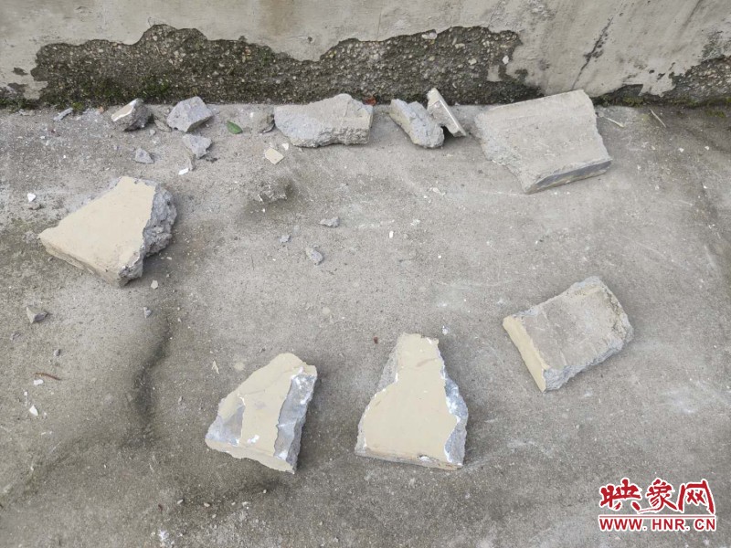 映象网讯(记者 邱延波 文/图)9月21日晚,郑州一小区从7楼往下掉水泥块,一楼住户吓得没敢出门,楼下的盆景被砸坏。