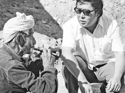 路遥(右)在陕北农村走访。 新华社记者 姚宗仪摄
