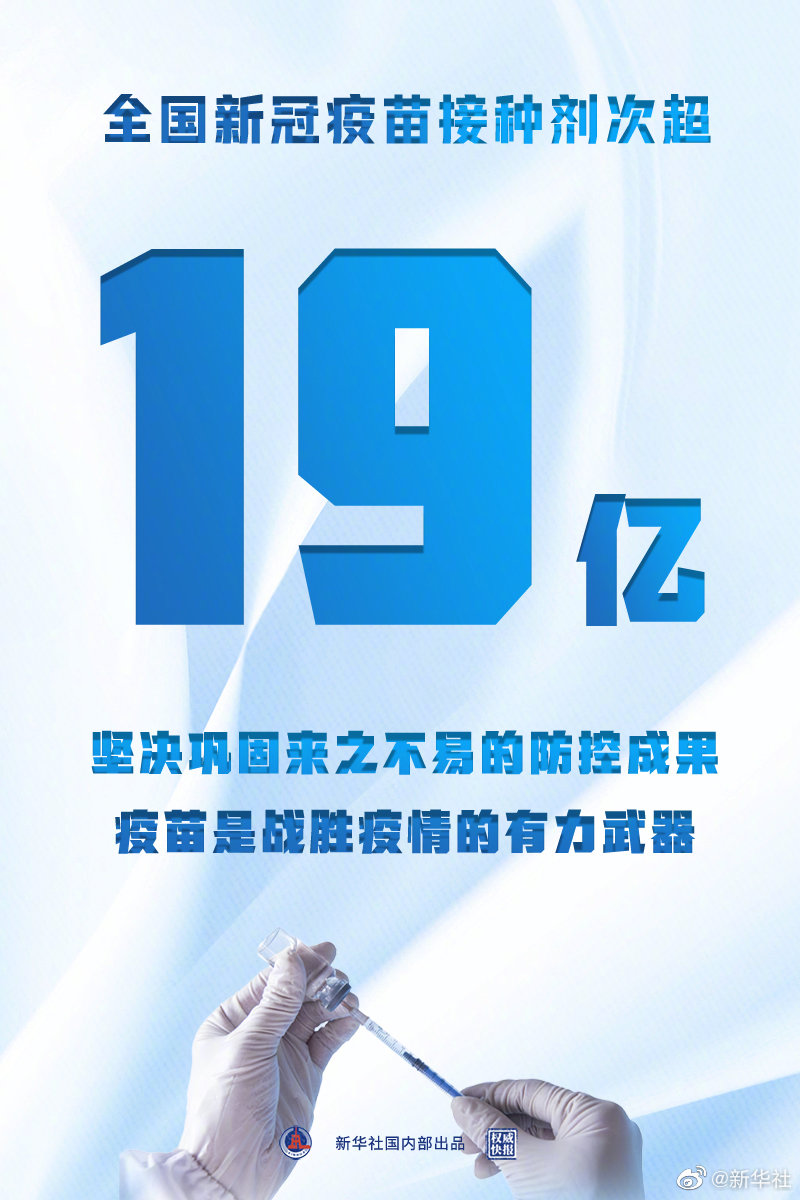 权威快报丨全国新冠疫苗接种剂次超19亿